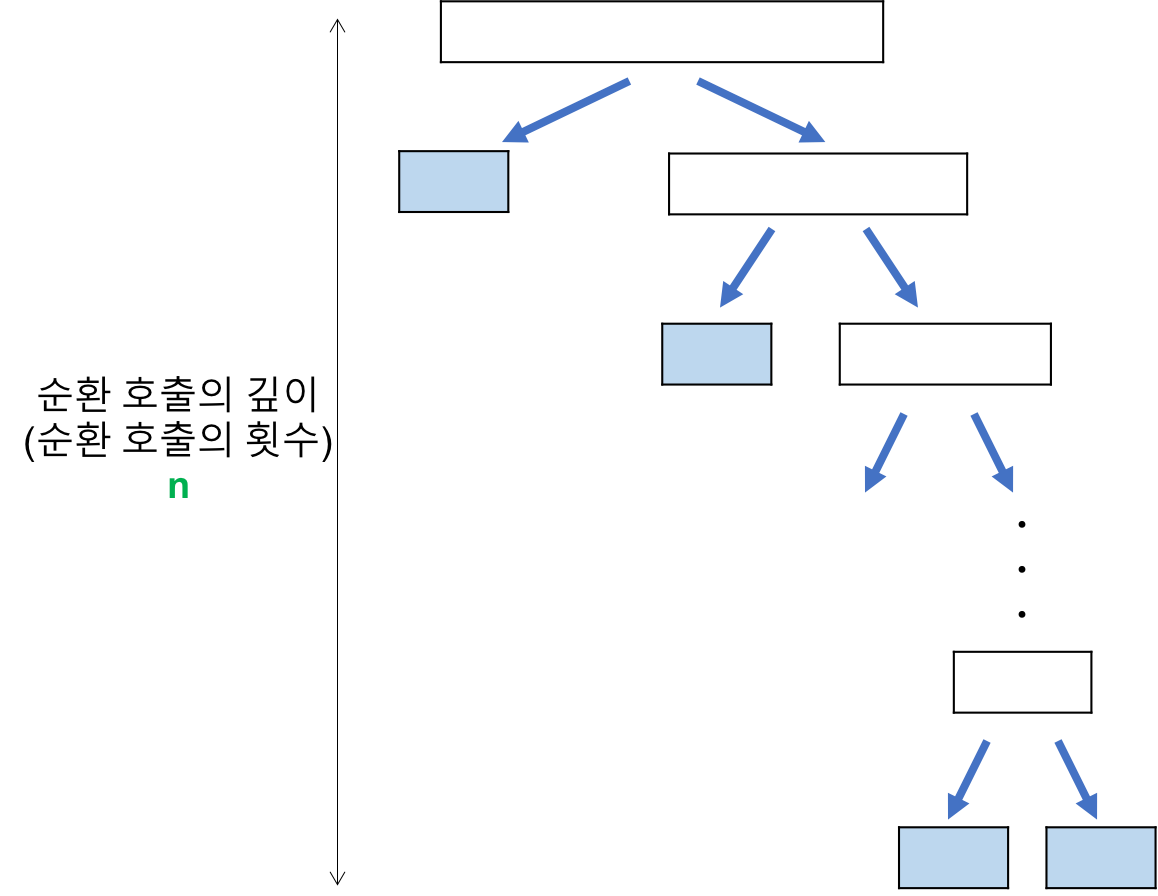 레코드의 개수 n이 2의 거듭제곱이라고 가정(n=2^k)했을 때, 순환 호출의 깊이는 n 임을 알 수 있다.